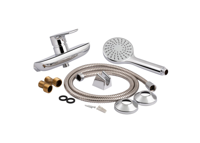 Змішувач, лійка для ручного душу, душовий шланг, кронштейн для ручного душу, кріпильні деталі.