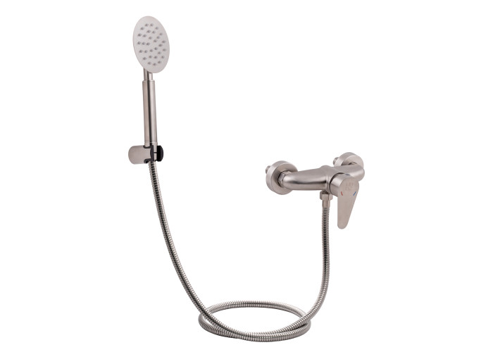 Змішувач для душу Lidz (NKS) 09 28 010 виконано з нержавіючої сталі з брашованою поверхнею. Змішувач монтується на стіну, а завдяки декоративним розеткам можна приховати похибки установки на обробці ванної кімнати. Подача води і регулювання температури здійснюється завдяки повороту важеля в потрібне положення. У комплектацію входить душовий гарнітур.