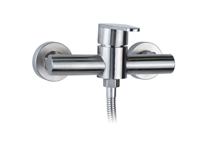Смеситель HT Ø35 для душа SS AQUATICA (HT-1D171P). Минимальное давление в системе водоснабжения: 0.5 бар. Максимальное давление в системе водоснабжения: 10 бар. Водородный показатель воды (pH): 6.5-8.5. Общая минерализация воды: не более 1500 г/м³. Только для чистой воды без примесей, содержащих абразивы (песок, глину, известь и т.д.). Модель HT-1D171P – это смеситель для душа Акватика, выполненный из нержавеющей стали. Тип – однорычажный. Шланг подсоединяется снизу. Современный дизайн и благородный серебристый цвет позволяют установить данный сантехнический прибор в душевых кабинах самых искушенных пользователей. Преимущества: устойчивость к коррозии; долговечность; презентабельный дизайн. Смеситель для душа укомплектован шлангом из нержавеющей стали (длиной 1,5 м), лейкой с двумя режимами работы и держателем из ABS-пластика, а также крепежными элементами. Способ монтажа – настенный. Гарантия от производителя предоставляется на 36 месяцев с дня покупки.