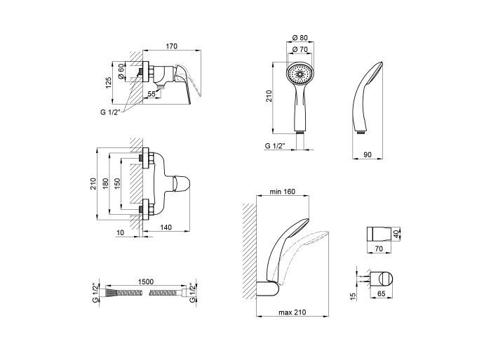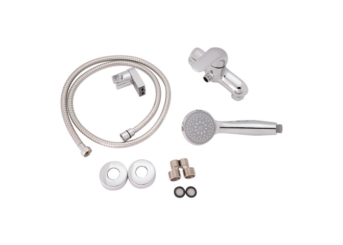 Змішувач, лійка для ручного душу, душовий шланг, кронштейн, кріпильні деталі.