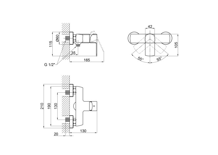 Змішувач для душу Qtap Lipno 4023101G виготовлено з високоякісної латуні, що не схильна до корозії, стійка до утворення вапняного нальоту та іржі. Завдяки брашованому графітовому покриттю має міцну поверхню і привабливий зовнішній вигляд. Управління водним потоком здійснюється за допомогою зручного важеля. Сучасний дизайн змішувача може органічно інтегруватися в інтер‘єр ванної кімнати.