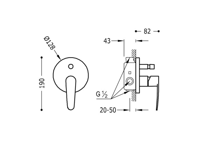 TRES (Tres Spain) FLAT-20418001 Oдноричажний вбудований змішувач для душа