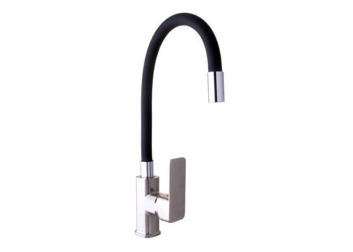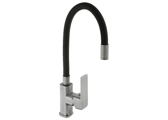 Смеситель кухонный DOMINO DMM-203 LR-StSTEEL-BLACK Гофрированный черный излив, на гайке