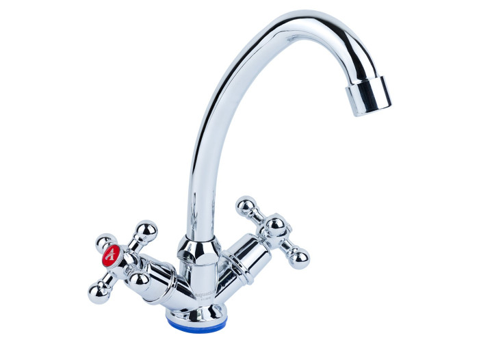 Смеситель QM 1/2" для кухни эконом на гайке AQUATICA (QM-1B159C). Продажа кратно 2 шт. Минимальное давление в системе водоснабжения: 0.5 бар. Максимальное давление в системе водоснабжения: 10 бар. Водородный показатель воды (pH): 6.5-8.5. Общая минерализация воды: не более 1500 г/м³. Только для чистой воды без примесей, содержащих абразивы (песок, глину, известь и т.д.). Двухвентильный смеситель для кухни QM-1B159C – это модель бюджетной линейки ТМ Акватика, выполненная в классическом стиле. Его характеризует высокий поворотный излив J-образной формы и крестообразные вентили с цветными заглушками. Этот кран подходит для установки на мойки разных конфигураций. Преимущества: хромоникелевое покрытие с защитой от коррозии; насыщение потока воды воздухом и удержание известковых отложений; плавное открывание вентилей; простое управление и неприхотливый уход. Смеситель для кухни QM-1B159C устанавливается на мойку врезным способом, фиксируется гайкой. Гарантия на изделие – 12 месяцев.