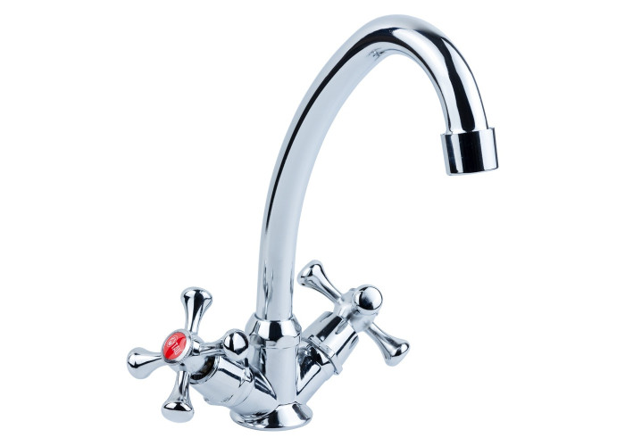 Змішувач VN 1/2" для кухні економ на шпильці TAU (VN-2B160C). Продаж кратно 2 шт. Мінімальний тиск в системі водопостачання: 0.5 бар. Максимальний тиск в системі водопостачання: 10 бар. Водневий показник води (pH): 6.5-8.5. Загальна мінералізація води: не більше 1500 г/м³. Тільки для чистої води без домішок, що містять абразиви (пісок, глину, вапно тощо). Змішувач для кухні з хромонікелевим покриттям VN-2B160C - модель економ-класу для любителів ретростилю. Його характеризує вигнутий поворотний вилив, двохвентильне управління напором і температурою води, доступна вартість. Загальні характеристики: класичний дизайн; кольорові заглушки вентилів для позначення холодної та гарячої води; швидке підключення до водопроводу; просте очищення від вапняного нальоту і плям. Для кріплення змішувача для кухні на мийку передбачена шпилька і 2 гнучких підведення. Гарантія на виріб 12 місяців.