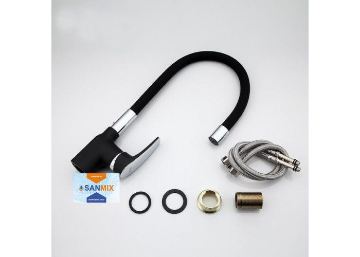 Смеситель для кухни Frap F4453-04 с гибким изливом отличается строгостью форм и четкостью линий. Этому способствует и его черный цвет. В то же время прибор имеет повышенную функциональность. Его гибкий излив поворачивается во все стороны и может устанавливаться на разной высоте. Благодаря этому кухонный смеситель Frap F4453-04 может монтироваться на мойки с различным количеством и глубиной раковин. Такой прибор позволит избежать брызг и создает стабильный поток.