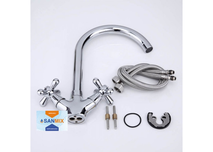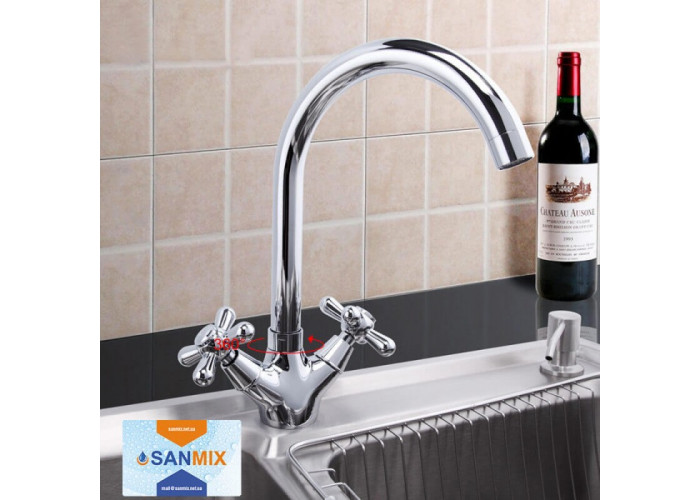 Смеситель для кухни Frap H25 F4025 имеет большой высоты излив, под которым удобно набирать высокие кастрюли. Он выглядит массивно, поэтому прекрасно подойдет для большинства современных интерьеров. Благодаря способности вращаться вокруг своей оси, он идеален для моек с несколькими раковинами.