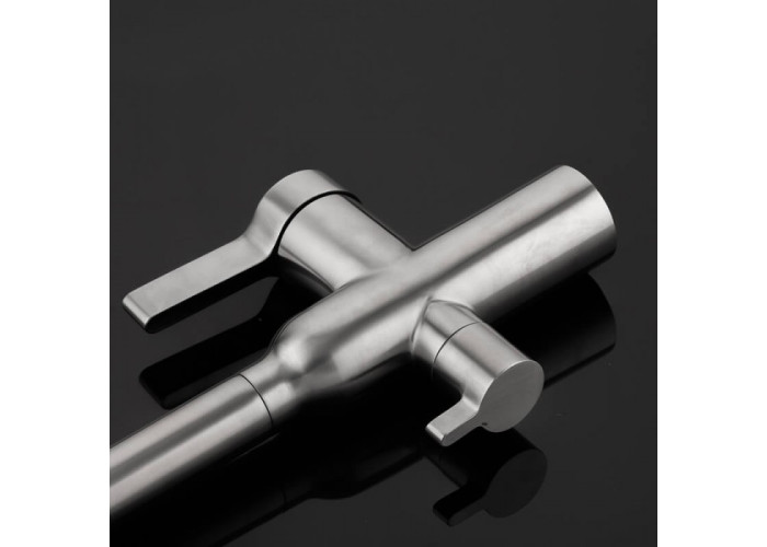 Модель G4399-4 - отличное сочетание раскошного внешнего вида и функциональности. Особенностью этого смесителя является наличие второго крана для питьевой воды с возможностью подключения к фильтру. Сам корпус изготовлен из высококачественной нержавеющей стали с изісканным 5ти шаровым покрытием. Керамический картридж 35мм обеспечивает бесшумную и бесперебойную работу изделия на многие годы.