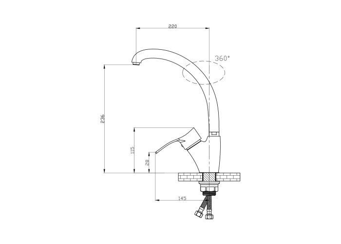 Змішувач, гнучкий підвід, кріпильні деталі.