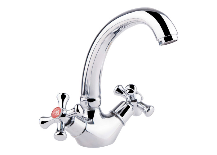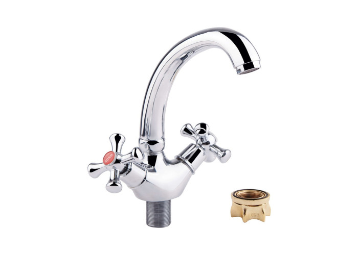 Смеситель для кухни GF (CRM)S-21-272F изготовлен из силумина. Благодаря глянцевому хромированному покрытию имеет оригинальный внешний вид. Выполнен в классическом стиле, с вентильными ручками для переключения потока холодной и горячей воды.