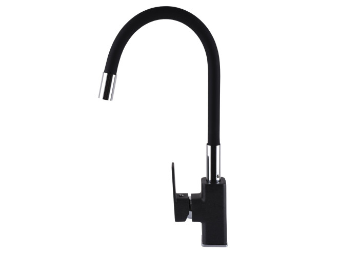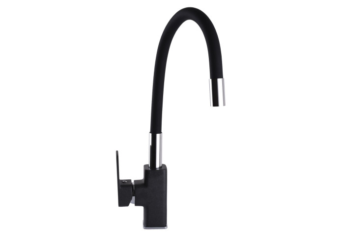 Функціональний змішувач для кухні з гусаком, напрямок і висота якого регулюється, як зручно споживачеві. Універсальний чорний колір гусака підійде в будь-який інтерєр. Хромоване покриття корпусу надає змішувача витонченість.