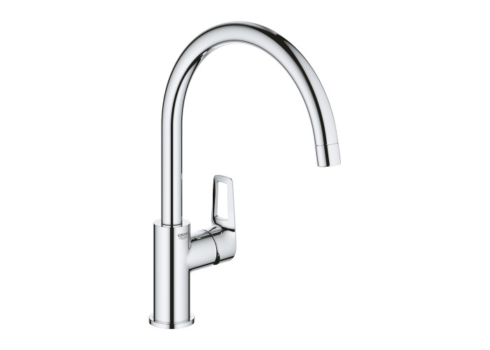Змішувач для кухні Grohe BauLoop 31232001 виготовлений із високоякісної латуні, що гарантує тривалий термін його експлуатації. Високий С-подібний вилив, який обертається на 360° градусів дозволяє набрати воду у високий посуд. Управління змішувачем здійснюється за допомогою міцної металевої рукоятки. Керамічний картридж GROHE LongLife, пластини якого покриті тефлоном, забезпечує точність і плавність управління напором і температурою води.