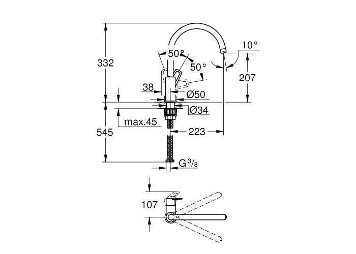 GROHE StarLight хромована поверхня. GROHE Longlife - плавність ходу важеля. GROHE Zero - окремі шляхи подачі води. GROHE QuickFix Plus - швидкий і зручний монтаж.