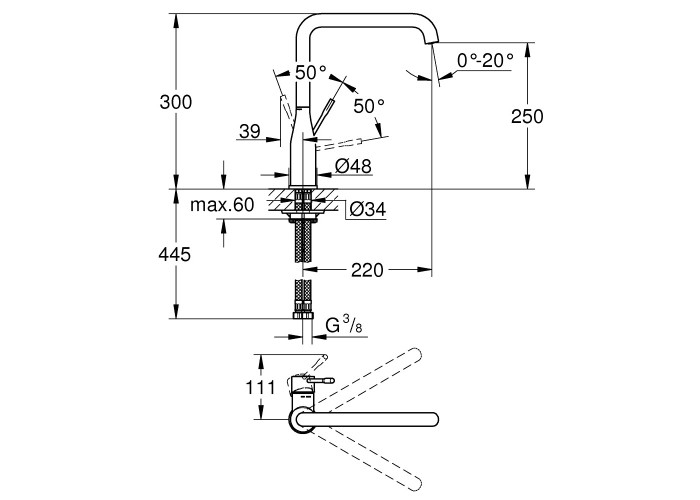 GROHE QuickFix - удобный монтаж. GROHE SilkMove - плавность хода рычага. GROHE StarLight - хромированное покрытие. GROHE ComfortHeight - высокий излив. GROHE SmoothTurn - плавный поворот излива. GROHE SwivelStop - стопорное кольцо ограничивает угол поворота излива смесителя, предотвращая попадание воды мимо мойки.