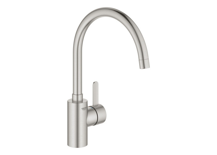 GROHE QuickFix - зручний монтаж. GROHE SilkMove - плавність ходу важеля. GROHE StarLight - хромоване покриття. GROHE ComfortHeight - високий вилив. GROHE SmoothTurn - плавний поворот виливу. GROHE SwivelStop - стопорне кільце обмежує кут повороту виливу змішувача, запобігаючи потраплянню води повз мийку. GROHE Zero - матеріал, з якого виготовляють змішувачі, не містить свинцю і не схильний до корозії.