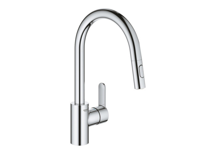 Конструкция выдвижной излив. Длина излива 223 мм. Поворотный излив область поворота 360 °. Высота смесителя 381 мм. Картридж керамический. Тип подведения гибкие подводы. Регулятор струи аэратор. Размер картриджа Ø 35 мм. Материал латунь. Подведение G ⅜. Покрытие хром. Страна производителя Германия. Гарантия 5 лет. Цвет хром.