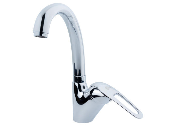 Змішувач SF Ø40 для кухні гусак вухо латунний шток на гайці TAU (SF-4B439C). Мінімальний тиск в системі водопостачання: 0.5 бар. Максимальний тиск в системі водопостачання: 10 бар. Водневий показник води (pH): 6.5-8.5. Загальна мінералізація води: не більше 1500 г/м³. Тільки для чистої води без домішок, що містять абразиви (пісок, глину, вапно тощо). Змішувач для кухні ТАУ SF-4B439C - це класична модель з J-подібним поворотним виливом з вбудованим аератором. Важіль конструктивно має овальну форму з отвором посередині. Для плавного регулювання температури і напору струменя встановлений картридж з кераміки, діаметр 40 мм. Монтаж на поверхню викорується врізним способом, зі зворотного боку фіксується спеціальною гайкою. Для підключення до магістралі в комплекті поставляються 2 гнучких підведення. Цей змішувач підійде для глибоких мийок з нержавіючої сталі, а також керамограніту. Загальні характеристики: просте управління однією рукою; привабливий лаконічний дизайн; захист від корозії і потемніння; латунний довговічний шток. Догляд: протирати після миття посуду м'якою тканиною або вологою губкою з мильним розчином, не використовувати абразиви. Гарантія на змішувач для кухні SF-4B439C - 12 місяців.