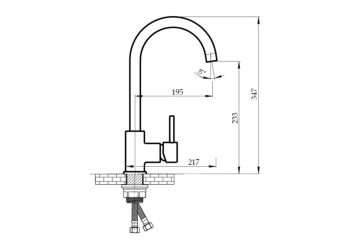 Смеситель, гибкая подводка, крепежи.