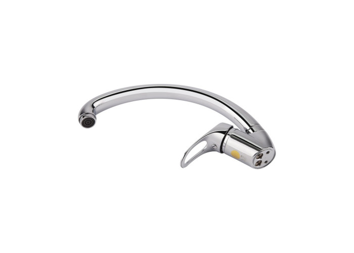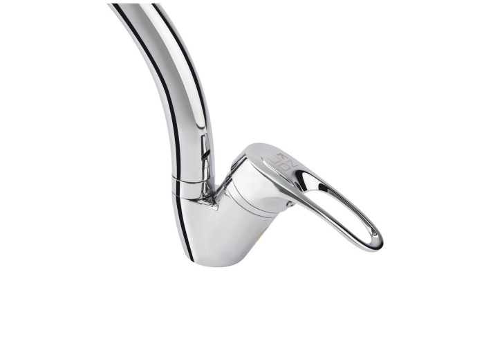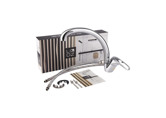 Смеситель для кухни с высоким поворотным изливом Lidz (CRM) 16 37 007 03 позволит набрать воду в высокую посуду и, благодаря глянцевой блестящей поверхности, будет смотрится эстетично, и подойдет под любой интерьер комнаты. Смеситель монтируется в отверстие для смесителя в столешнице врезным способом. Напор воды и ее температура регулируются поворотом рычага с нанесенными маркировкой Х+Г воды и фирменным логотипом производителя в необходимое положение.