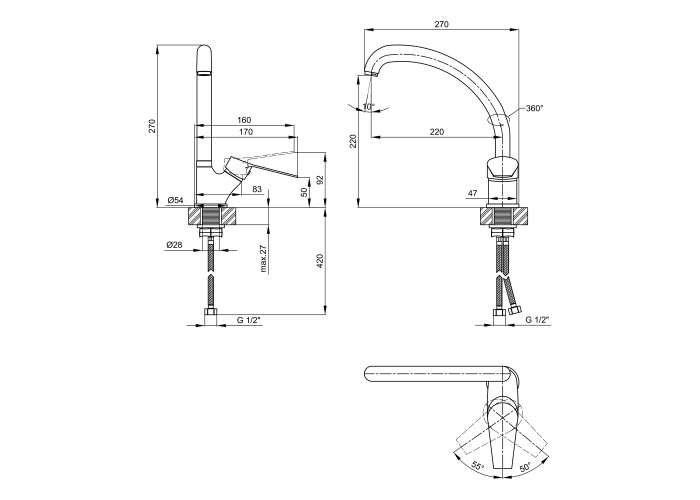 Смеситель, гибкая подводка, крепежи.