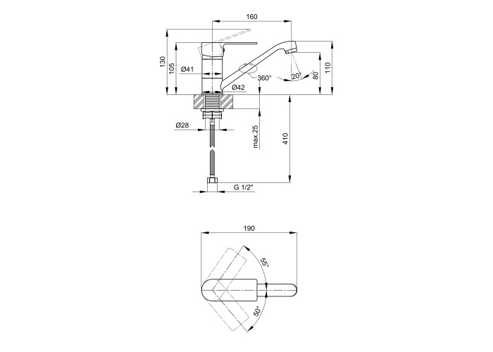 Змішувач, гнучкий підвід, кріпильні деталі.
