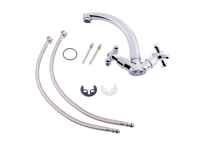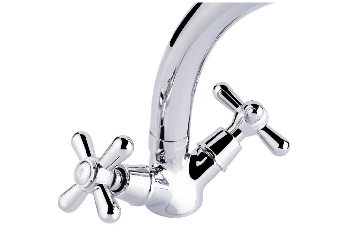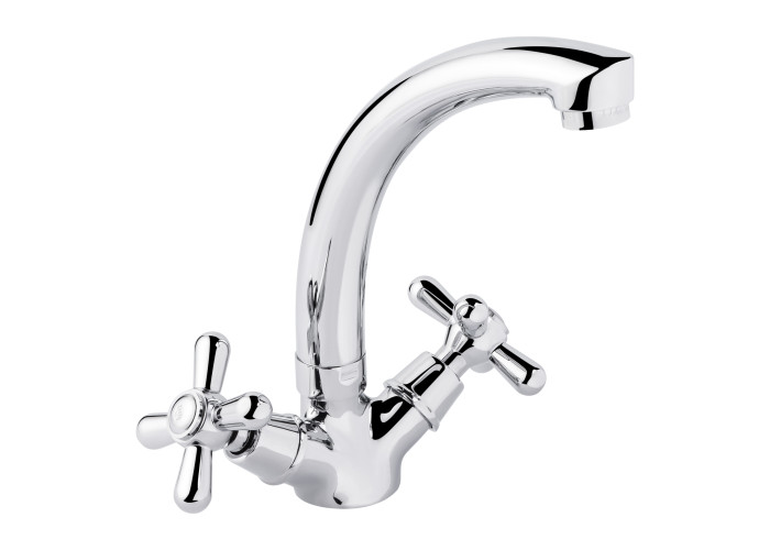 Змішувач для кухні з поворотним виливом Lidz (CRM) Dominox 15 272-2 виконано з міцної латуні з глянцевою блискучою поверхнею. Він монтується в отвір в кухонній мийці або в стільницю врізним способом. Подача води здійснюється завдяки повороту вентелів в необхідне положення. Підключення води відбувається за допомогою гнучкого підведення, що входить в комплектацію.