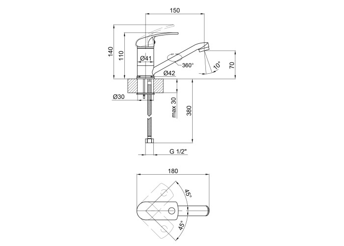 Змішувач, гнучкий підвід, кріпильні деталі.