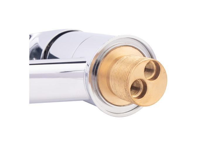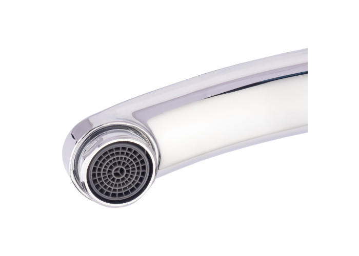 Змішувач для кухні Lidz (CRM) Mars 81 003 00 виготовлено з латуні. Завдяки глянцевій хромованій поверхні має оригінальний зовнішній вигляд. Виконаний в класичному стилі зі зручною ручкою для перемикання холодної та гарячої води. Такий змішувач не тільки зручний у використанні, а й ідеально доповнить інтер‘єр кухні.