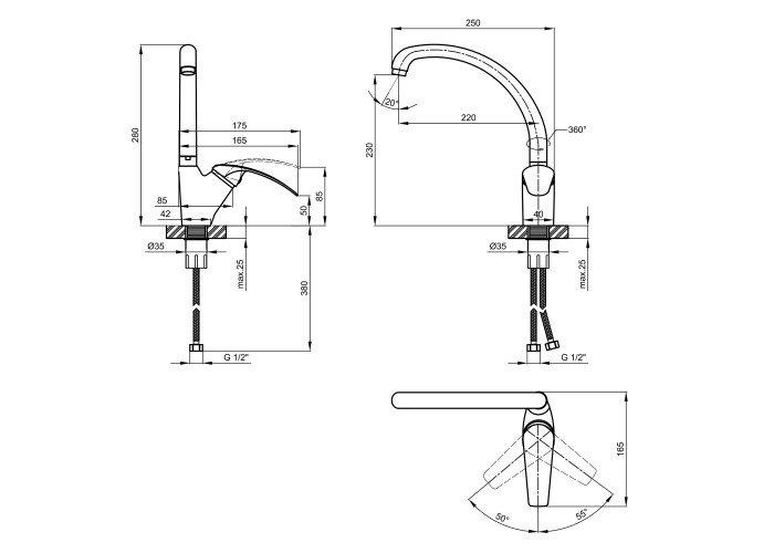 Змішувач, гнучкий підвід, кріпильні деталі.
