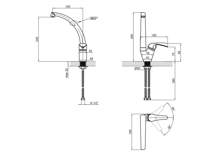 Змішувач, гнучкий підвід, кріпильні деталі.