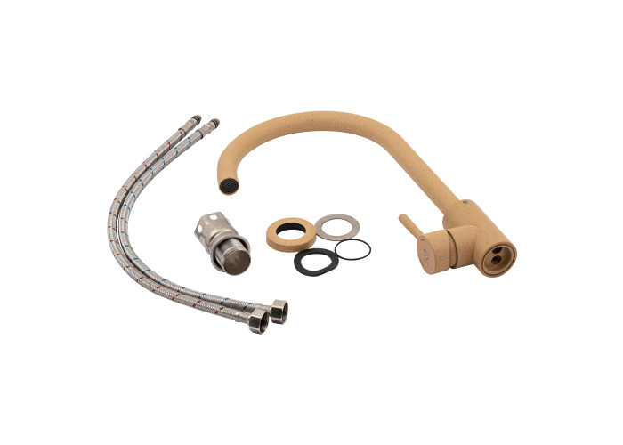 Смеситель, гибкая подводка, крепежи.