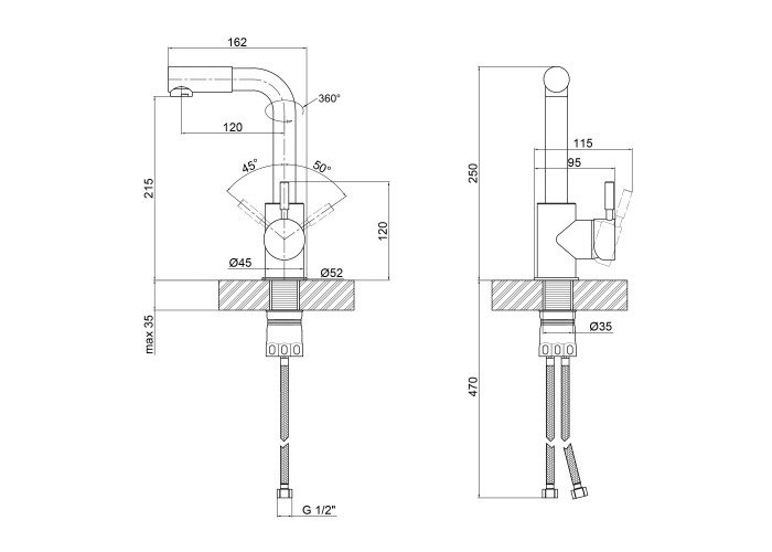 Смеситель, гибкая подводка, крепеж.