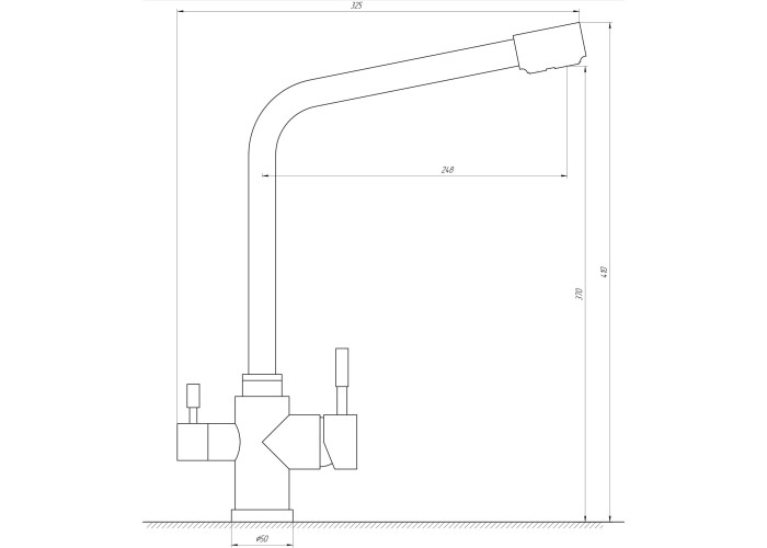 Водопроводная и фильтрованная вода имеют отдельные каналы (трубка в трубке) и выходные отверстия в лейке смесителя, что полностью исключает возможность смешивания очищенной и грязной воды.