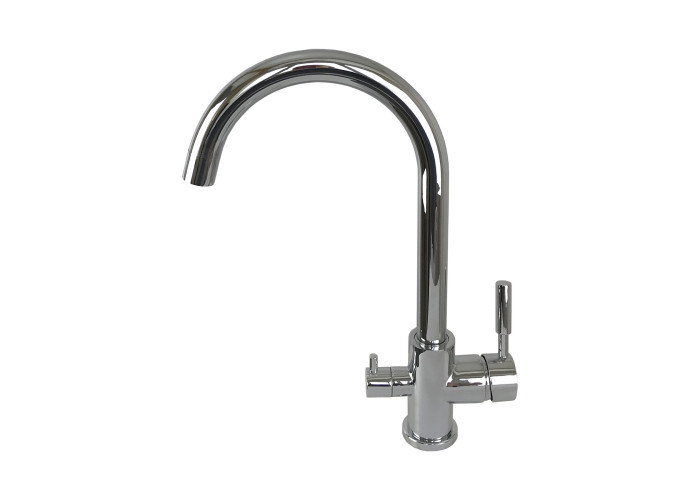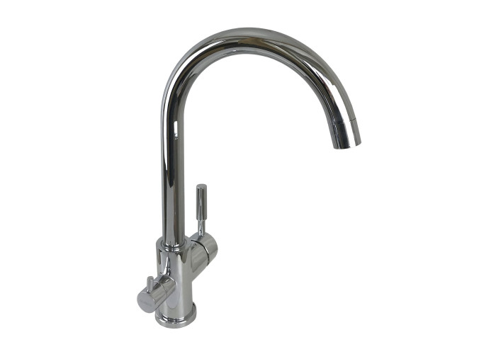 Водопроводная и фильтрованная вода имеют отдельные каналы (трубка в трубке) и выходные отверстия в лейке смесителя, что полностью исключает возможность смешивания очищенной и грязной воды.