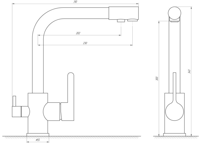 Водопроводная и фильтрованная вода имеют отдельные каналы (трубка в трубке) и выходные отверстия в лейке смесителя, что полностью исключает возможность смешивания очищенной и грязной воды.