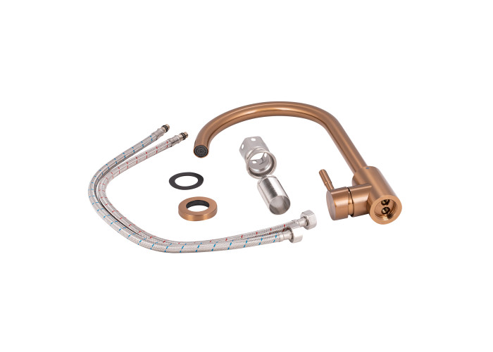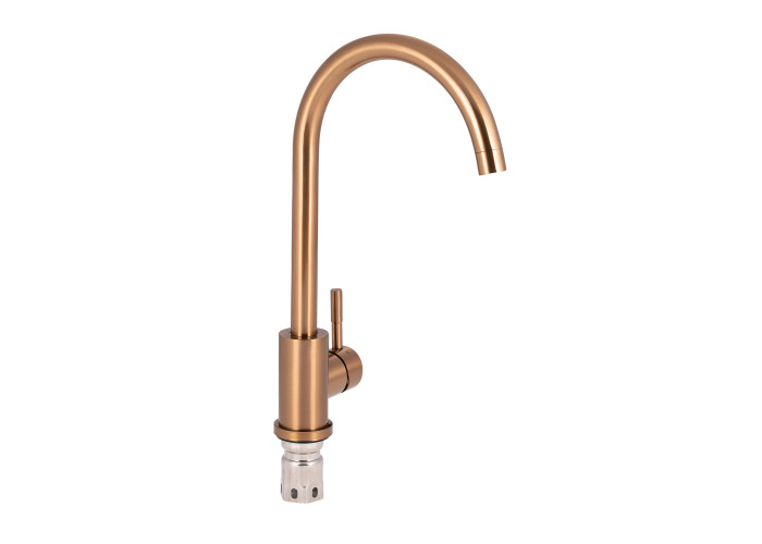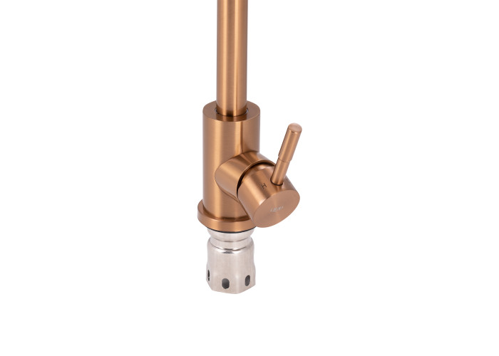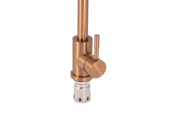 Смеситель для кухни Qtap D007FBR PVD изготовлен из высококачественной пищевой латуни, которая не подвержена коррозии, устойчива к ударам и появлению трещин. Бронзовая глянцевая поверхность корпуса смесителя придает ему привлекательности. Смеситель имеет однорычажное управление, с помощью которого можно отрегулировать температуру и напор холодной и горячей воды. Выполнен в современном стиле, с поворотным изливом и станет настоящей изюминкой в интерьере кухни.