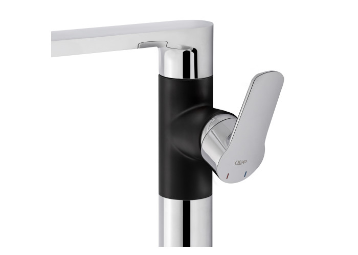 Змішувач для кухні Qtap Eco CRB 007F виготовлено з високоякісної харчової латуні, що не схильна до корозії, стійка до ударів і появи тріщин. Глянцеве хромоване покриття з чорною матовою вставкою не тільки підвищує довговічність змішувача, а й надає йому привабливості. Змішувач має одноважільне управління, за допомогою якого можна відрегулювати температуру і натиск води. Виріб виконано в сучасному стилі і ідеально підійде до будь-якого інтер‘єру кухні.