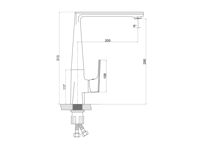 Змішувач, гнучкий підвід, кріпильні деталі.