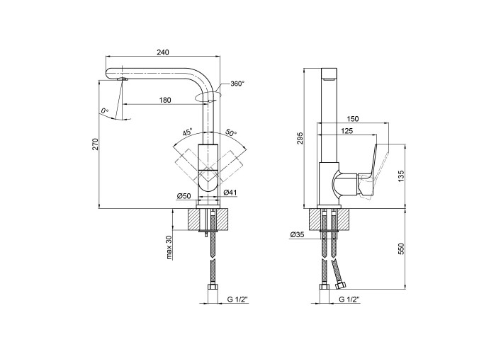 Змішувач, гнучкий підвід, кріпильні деталі.
