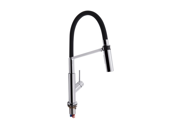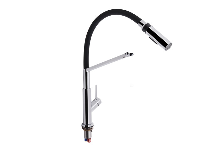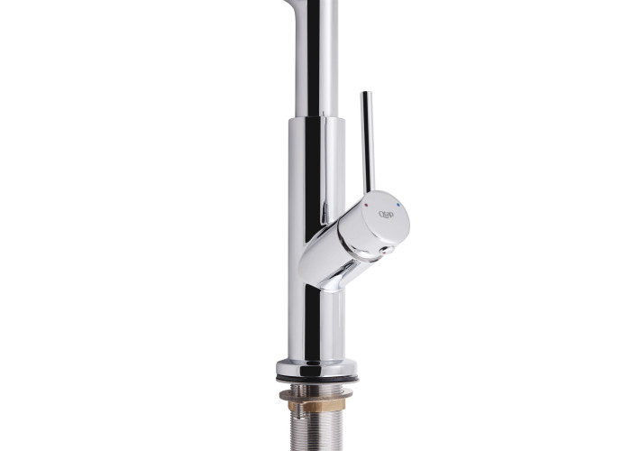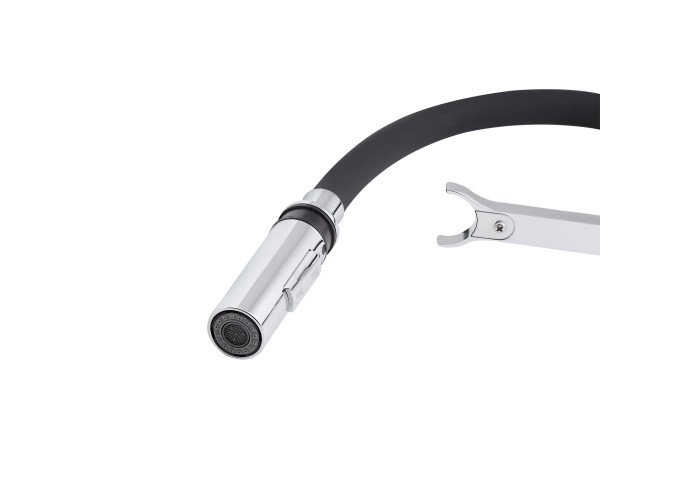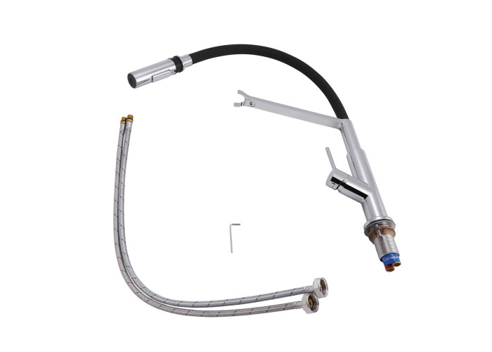 Смеситель, гибкая подводка, ключ для аэратора, крепежи.
