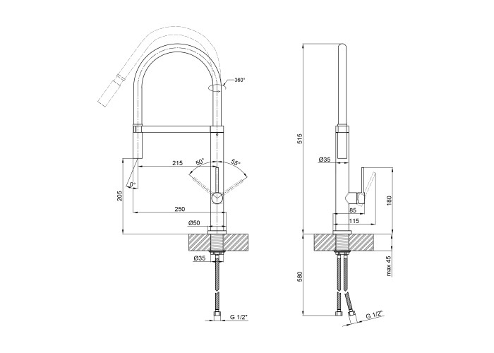 Высота излива, мм