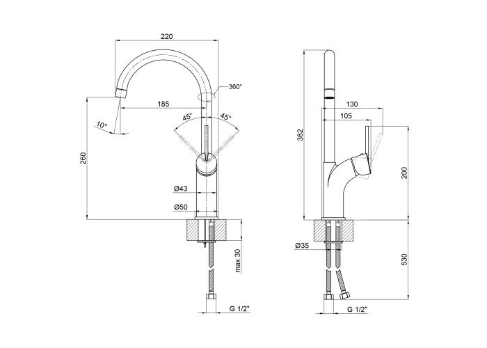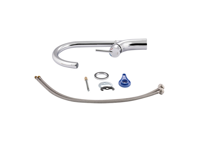 Смеситель, гибкая подводка, крепежи.