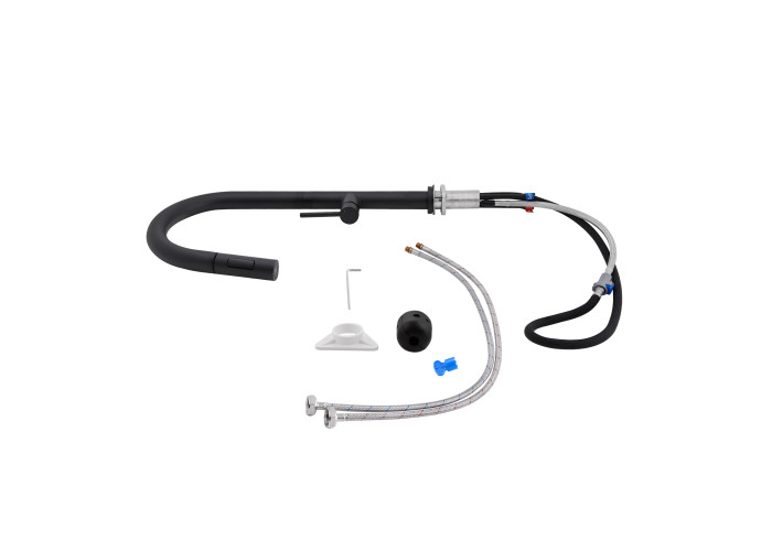 Комплектация Смеситель, шланг для выдвижной лейки, гибкая подводка, ключ для аэратора, крепежи, якорь.
