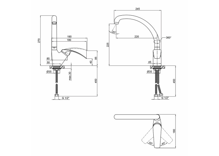 Змішувач, гнучкий підвід, кріпильні деталі.