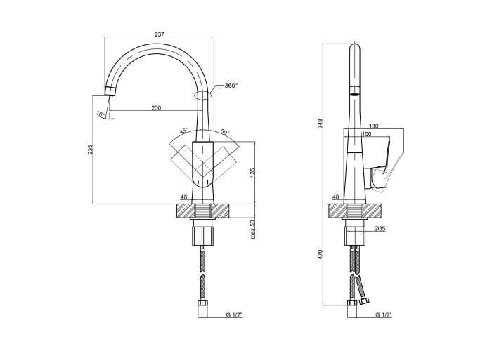 Змішувач, гнучкий підвід, кріпильні деталі.