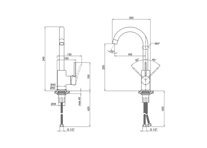 Смеситель, гибкая подводка, крепежи.