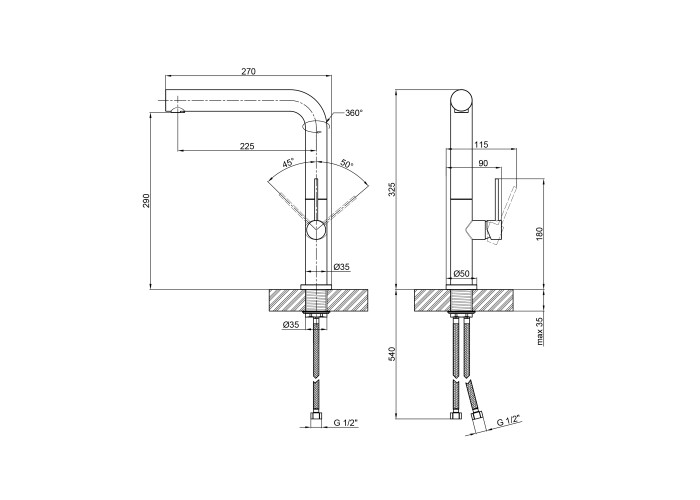 Змішувач, гнучкий підвід, кріпильні деталі.