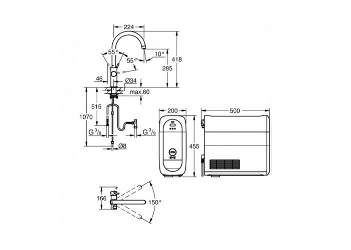 Смеситель для кухни Grohe Blue Home 31455001 изготовлен из очищенной латуни. Удобный, высокий излив с диапазоном поворота на 150 ° и тонкий корпус скрывают отдельные внутренние водные каналы для фильтрованной и нефильтрованной воды. Рукоятка рычага обеспечивает подачу технической воды, но для активации функции фильтра, охлаждения или газирования просто нужно нажать кнопку с подсветкой LED. Светодиодный дисплей также сообщит, когда менять картридж.