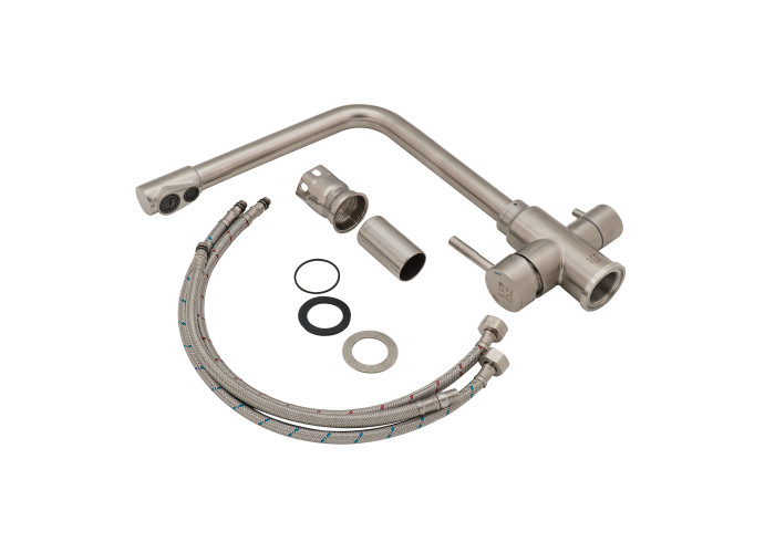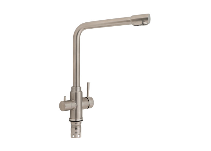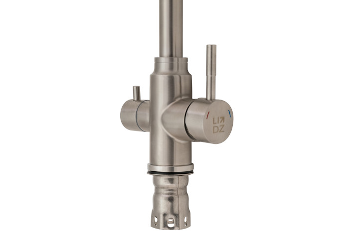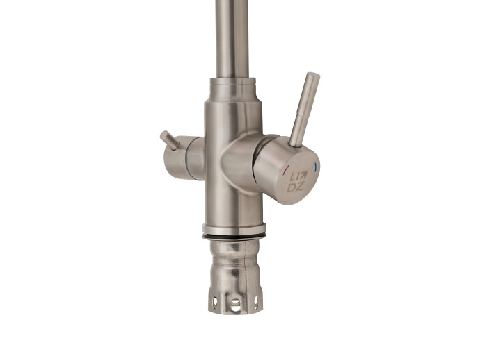 Смеситель для кухни с фильтром Lidz (NKS) 12 32 020F-13 изготовлен из нержавеющей стали. Благодаря никелированной брашированной поверхности имеет оригинальный внешний вид. Выполнен в современном стиле, в котором предусмотрены 2 излива: вода для бытовых расходов, а также с фильтром для питьевой воды. Такой смеситель имеет дополнительный рычаг, позволяющий переключать режим на подачу питьевой воды. Он не только удобен и практичен, но и станет идеальной находкой на кухне.