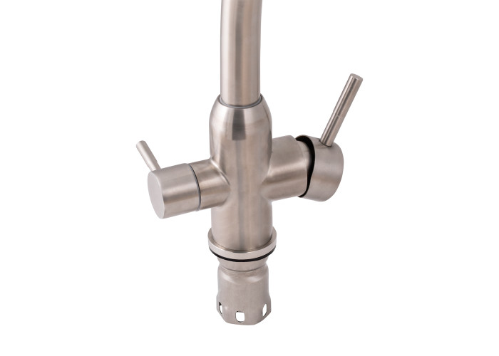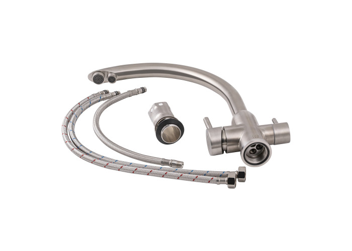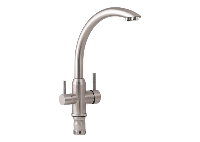 Смеситель для кухни с фильтром Lidz (NKS) 12 32 020F-9 изготовлен из нержавеющей стали. Благодаря никелированной брашированной поверхности имеет оригинальный внешний вид. Выполнен в современном сдержанном стиле, в котором предусмотрены 2 излива: вода для бытовых расходов, а также с фильтром для питьевой воды. Такой смеситель имеет дополнительный рычаг, позволяющий переключать режим на подачу питьевой воды. Он не только удобен и практичен, но и станет идеальной находкой на кухне.